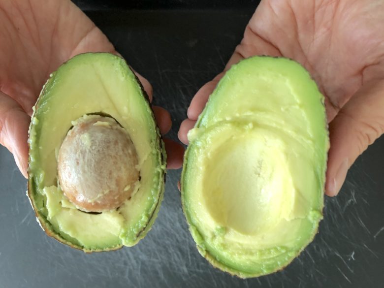 硬いアボカドはおいしくないだけでなく、タネからうまく外せません。皮をむいてしまってから硬いことに気づいたら、半分に切った状態で断面を下にして、そのまま電子レンジ600Wで1分ほど加熱します。そうすると、機械的に追熟させることができます。ですが、やや味が落ちるともいわれているので、すでに切ってしまったときなどの場合に限り使ってみましょう。