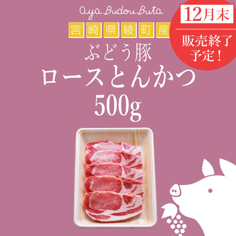 ※12月末販売終了予定※【宮崎県産】<ほろよいポーク>綾ぶどう豚ロースとんかつ(5枚入り500g)【送料無料/ギフト対応無料/冷凍パック】