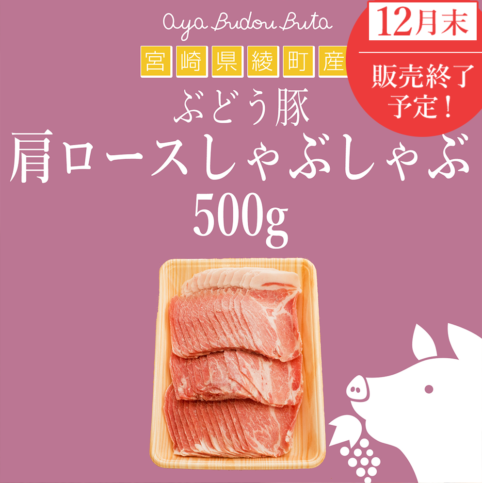 ※12月末販売終了予定※【宮崎県産】<ほろよいポーク>綾ぶどう豚肩ロースしゃぶしゃぶ(500g)【送料無料/ギフト対応無料/冷凍パック】